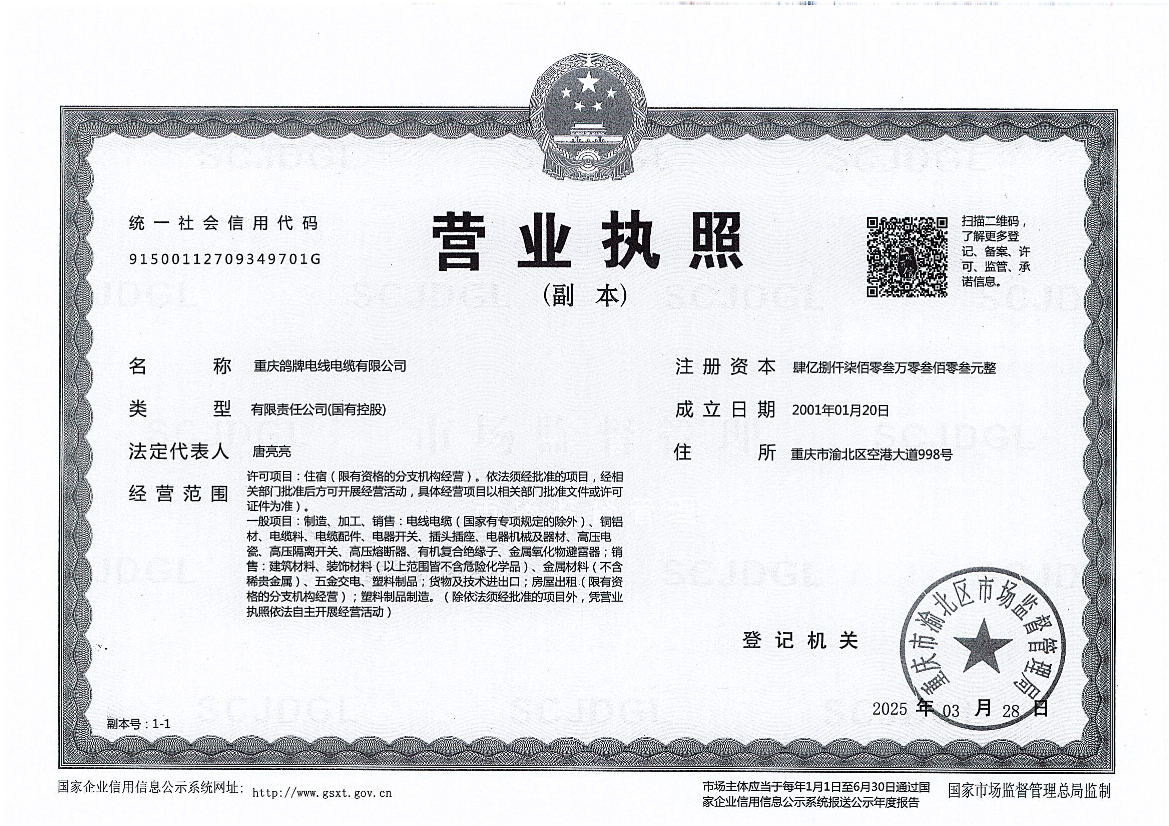 目前,公司鴿牌系列產(chǎn)品被評(píng)為“國家質(zhì)量AA信譽(yù)資質(zhì)”、“重慶名牌產(chǎn)品”;鴿牌公司被授予“全國五一勞動(dòng)獎(jiǎng)狀”、“國家高新技術(shù)企業(yè)”、“全國工業(yè)品牌培育示范企業(yè)”、“國家級(jí)綠色工廠”、“重慶老字號(hào)”等多項(xiàng)稱號(hào),蟬聯(lián)11屆“中國線纜產(chǎn)業(yè)最具競(jìng)爭(zhēng)力企業(yè)100強(qiáng)”,連續(xù)14年入選“重慶制造業(yè)企業(yè)100強(qiáng)”,連續(xù)17年入選“重慶企業(yè)100強(qiáng)”。